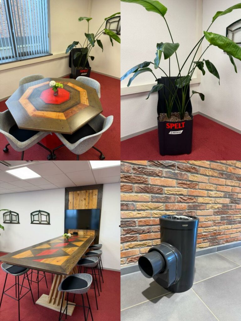 Daarnaast hebben we een oude kliko omgetoverd tot plantenbak en gebruiken we een rioolonderdeel als prullenbak.