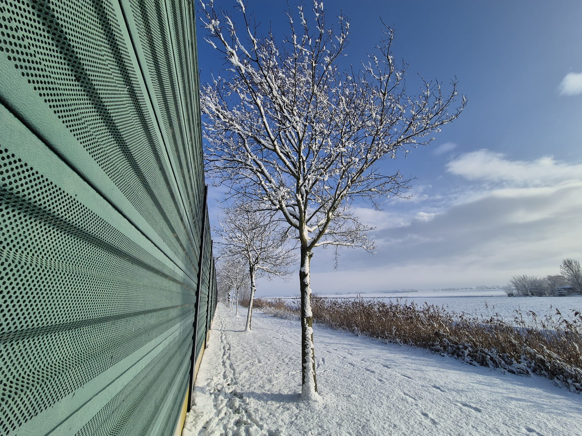 Onze foto’s tonen hoe het terrein er onder een laag sneeuw verzorgd bij ligt. Zo laten we zien dat duurzaamheid en oog voor de omgeving bij ons altijd centraal staan, het hele jaar door.